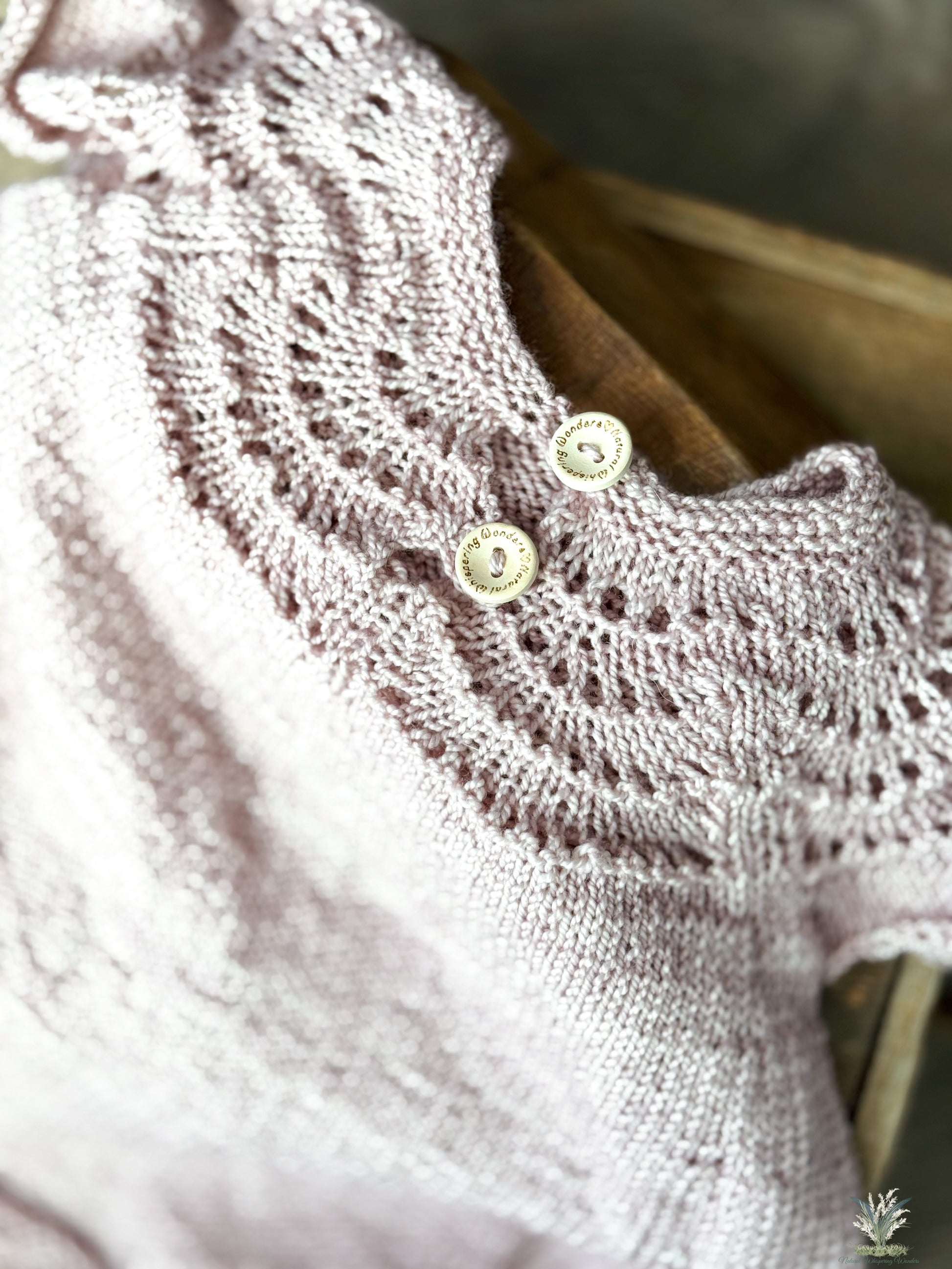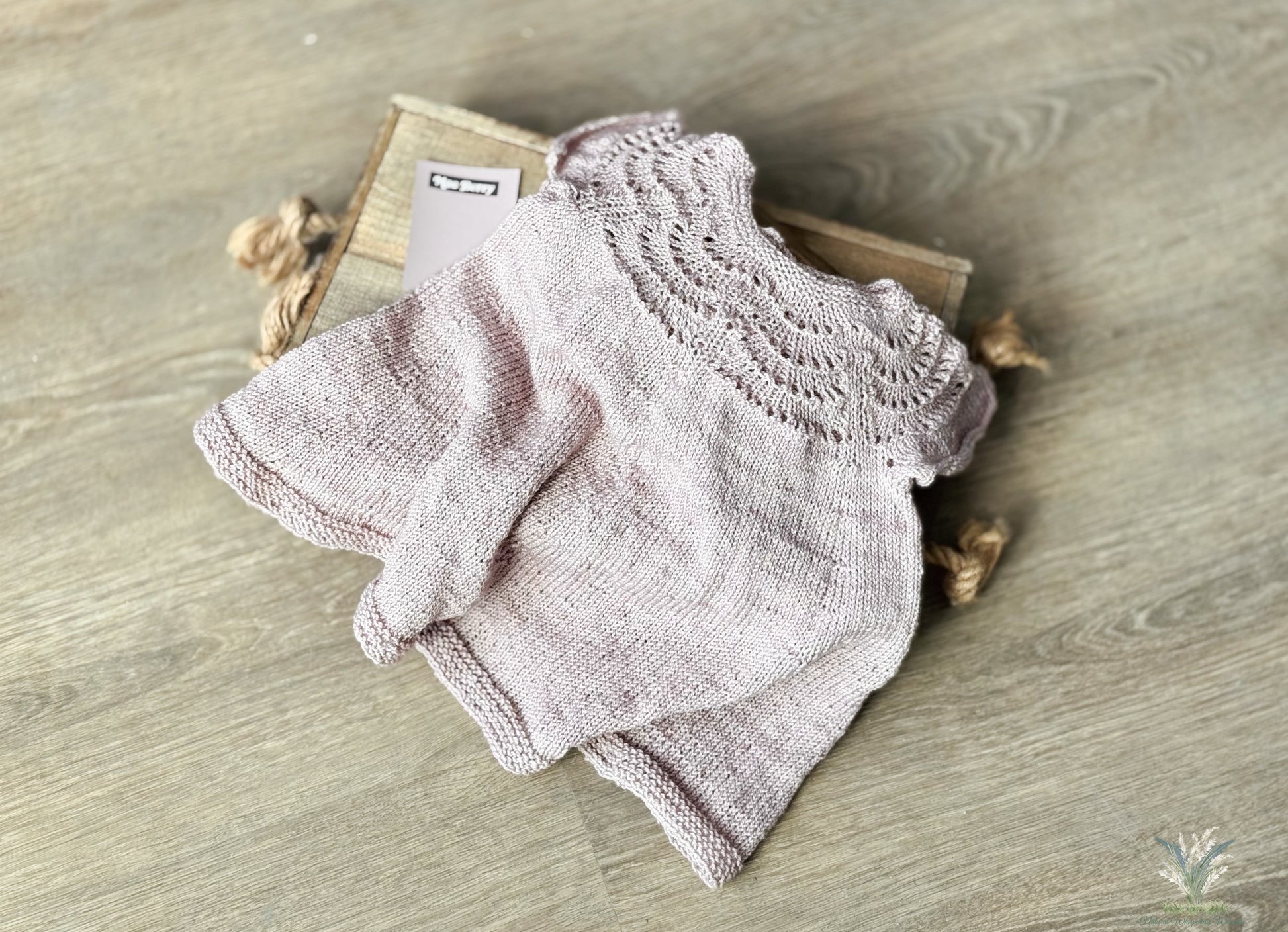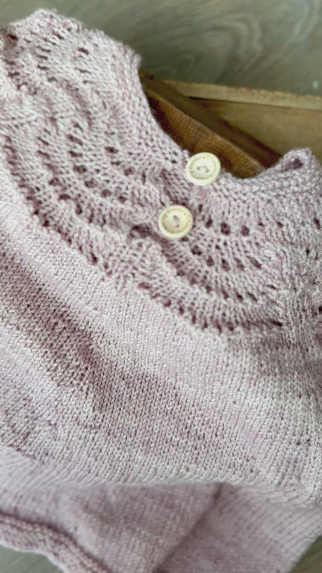 Soft, sweet, and delicately detailed. This hand-knit baby dress is crafted from luxurious hand-dyed merino yarn in a size perfect for 6–12 months. The color is a beautiful Mae Berry match, lending a dreamy, dusty mauve tone with natural depth.