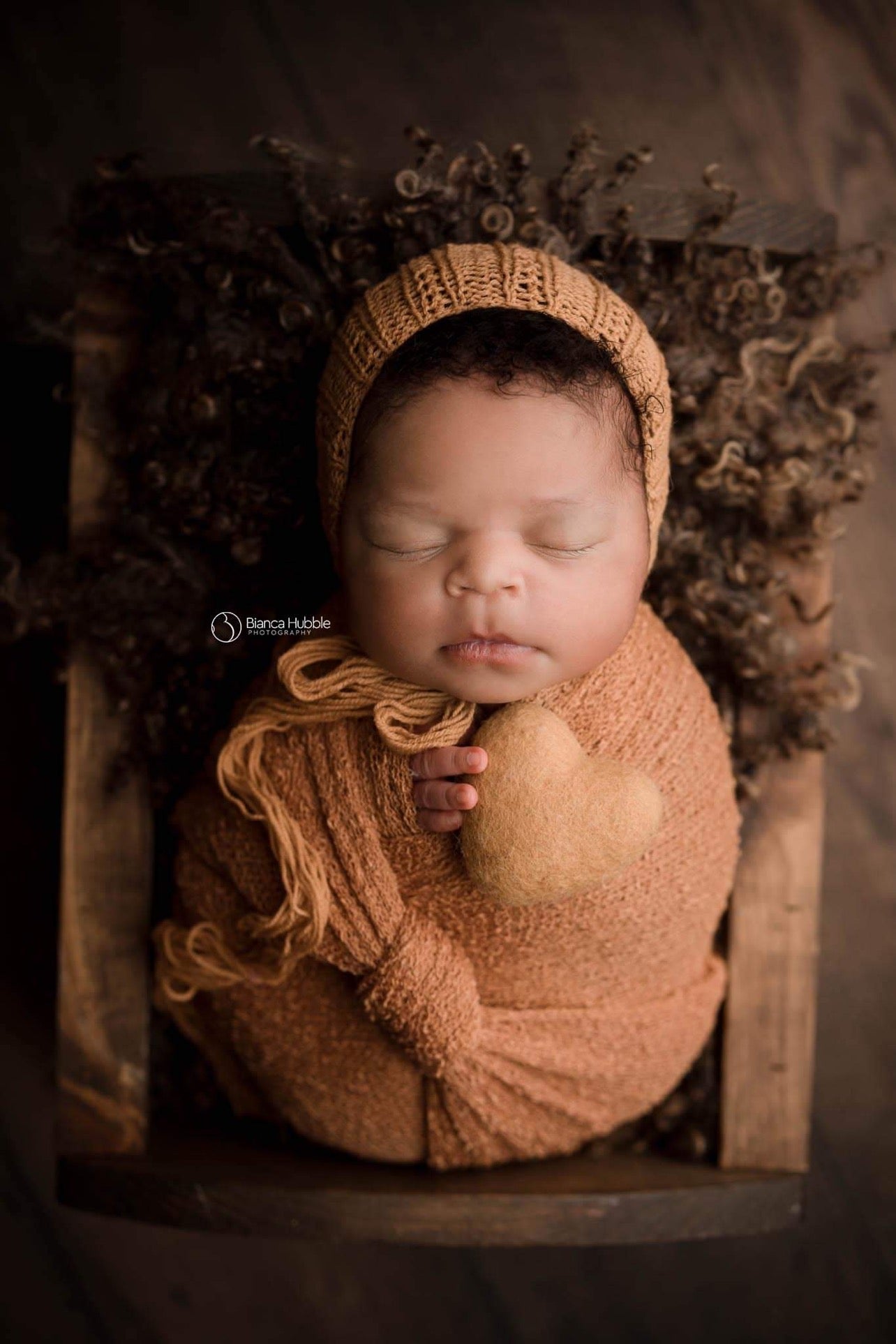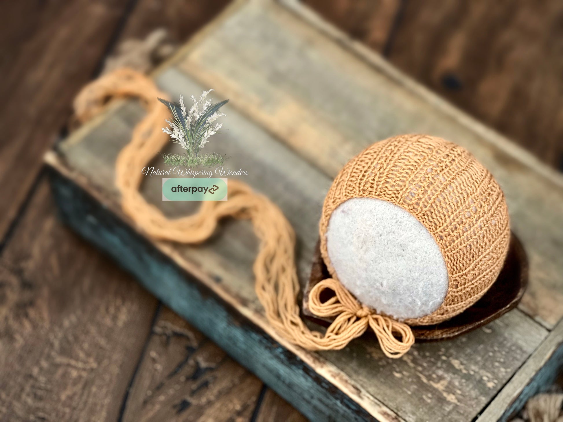 This is Arlow that is beautifully hand knit with a gorgeous light pumpkin tone. Perfect for both girls and boys.