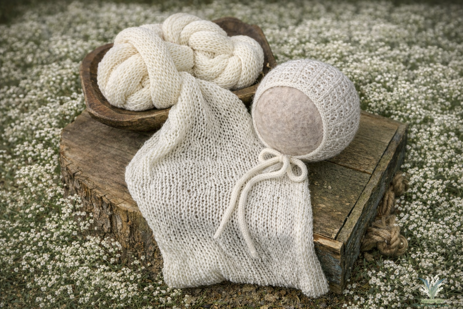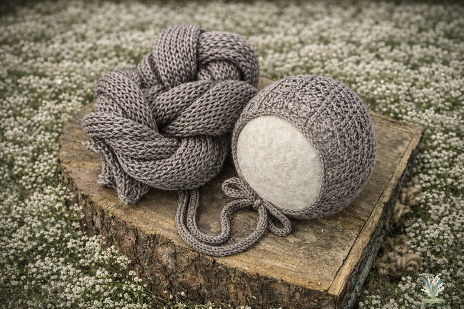 All of these wraps are hand knit with soft merino. These wraps come with a matching bonnet with this knit texture. Perfect staples for any newborn studio. There are so many beautiful colours to choose from.