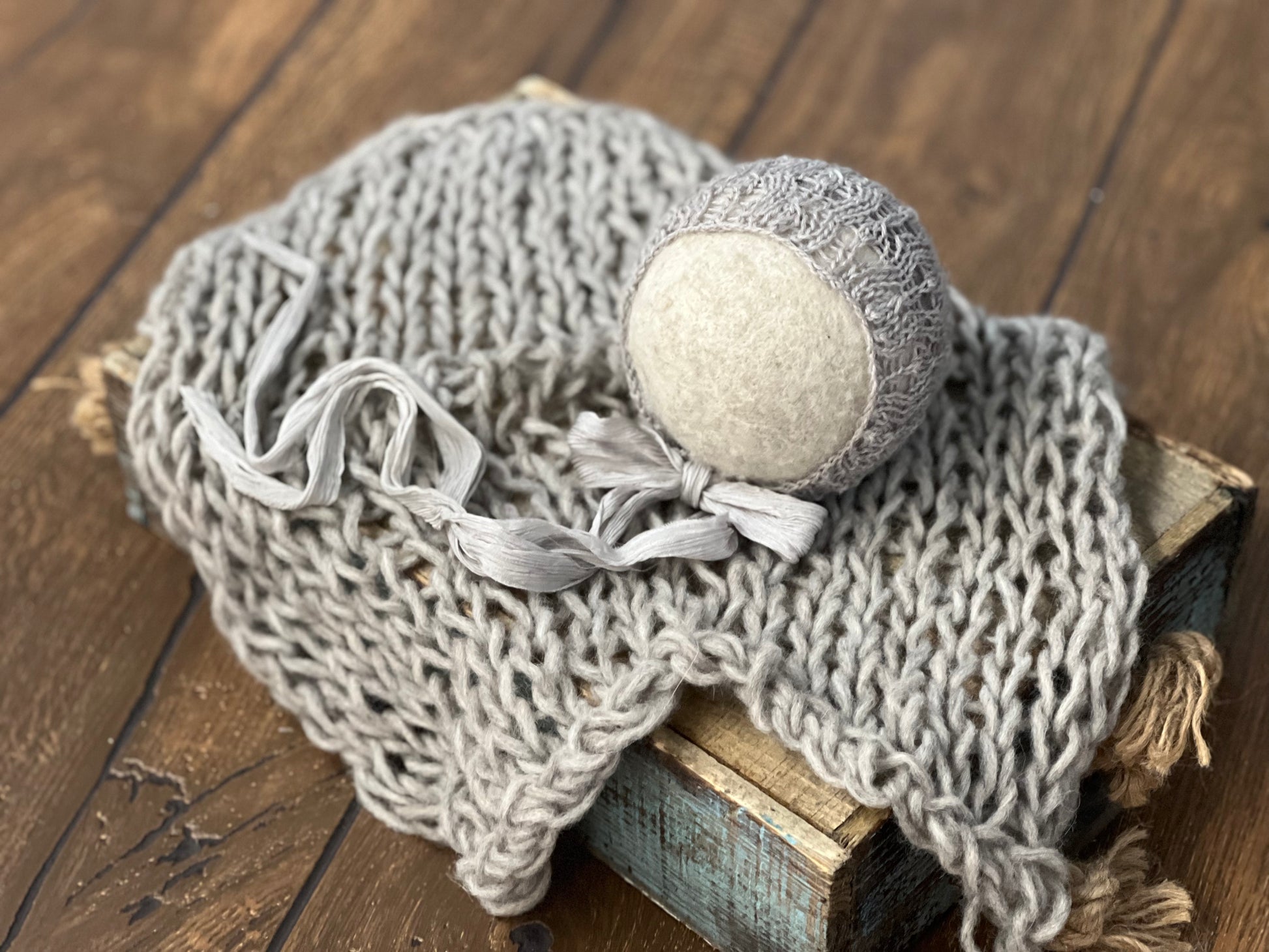 Hand knit with organic merino. I love this stitch. Very stretchy and yet gives a slight delicate knit with silk ties.