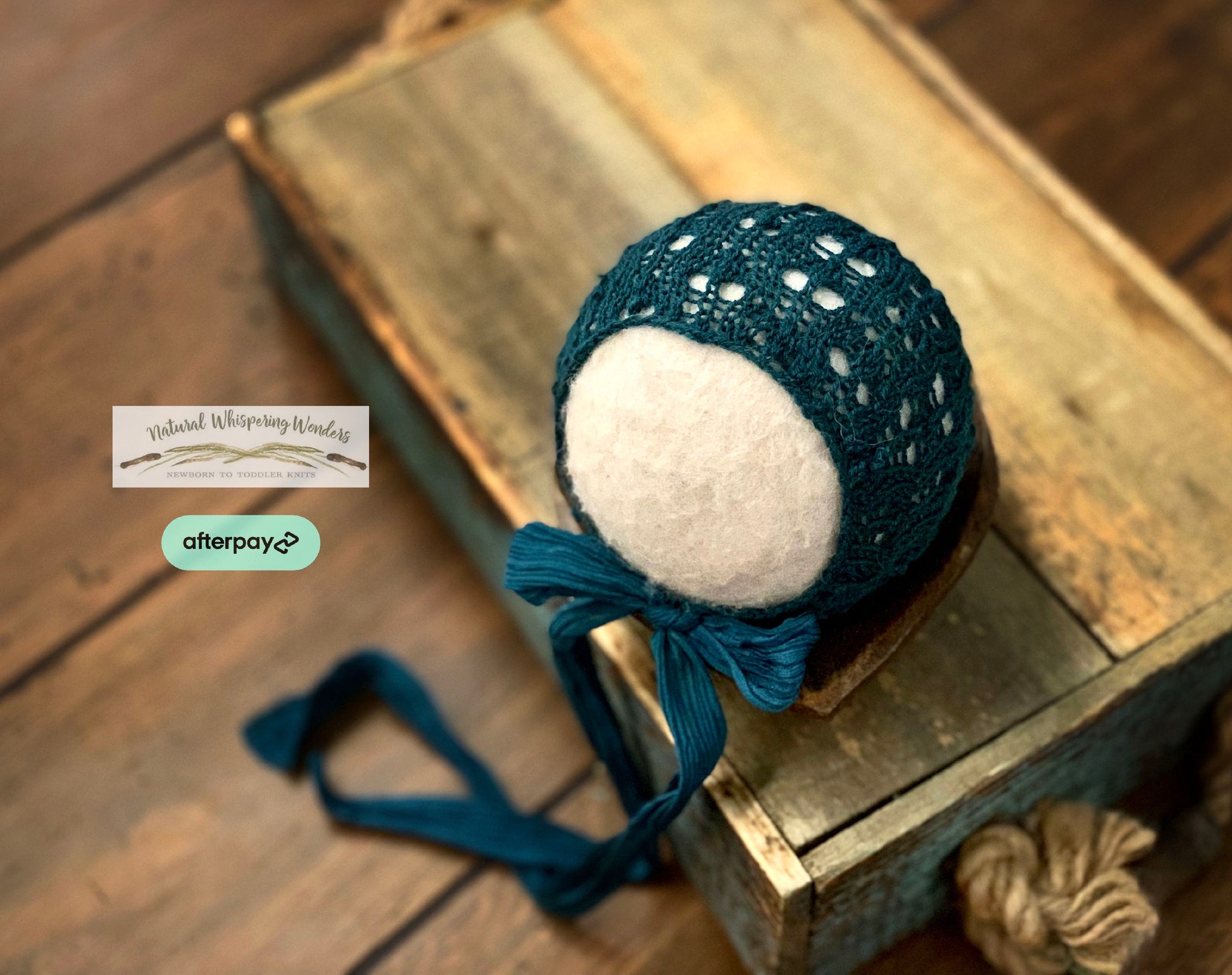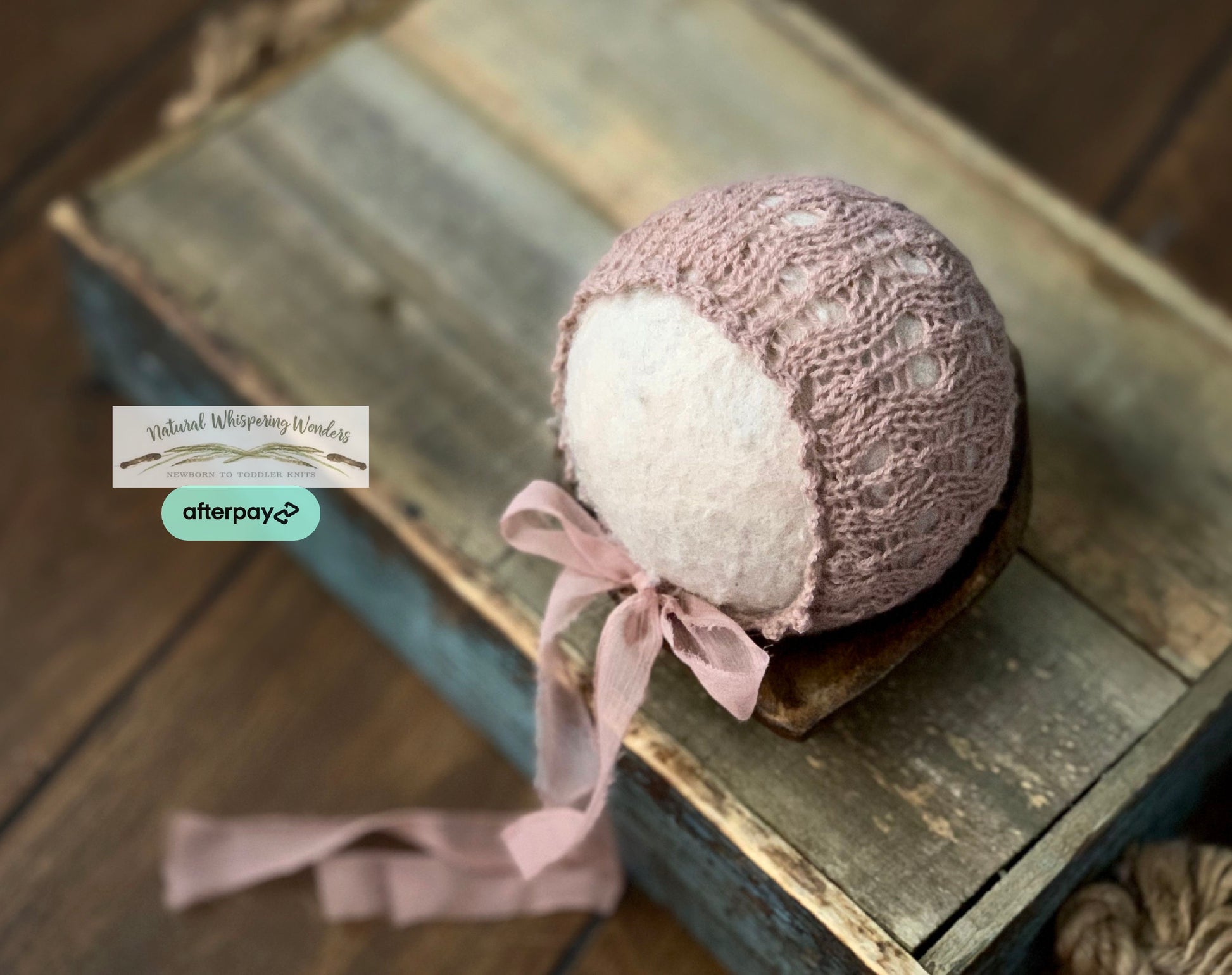 Hand knit with organic merino. I love this stitch. Very stretchy and yet gives a slight delicate knit. Comes with coordinating silk ties.