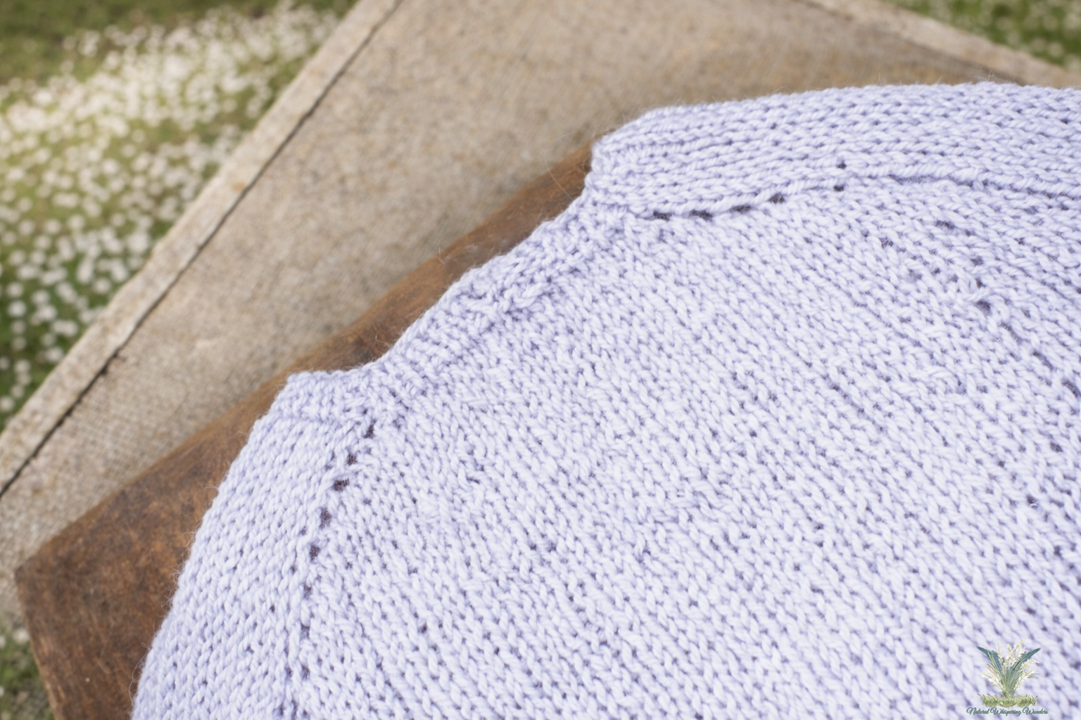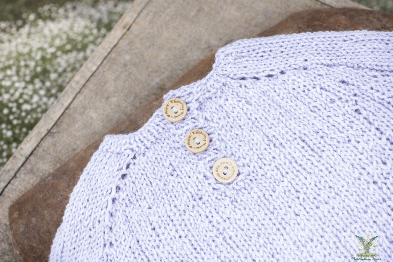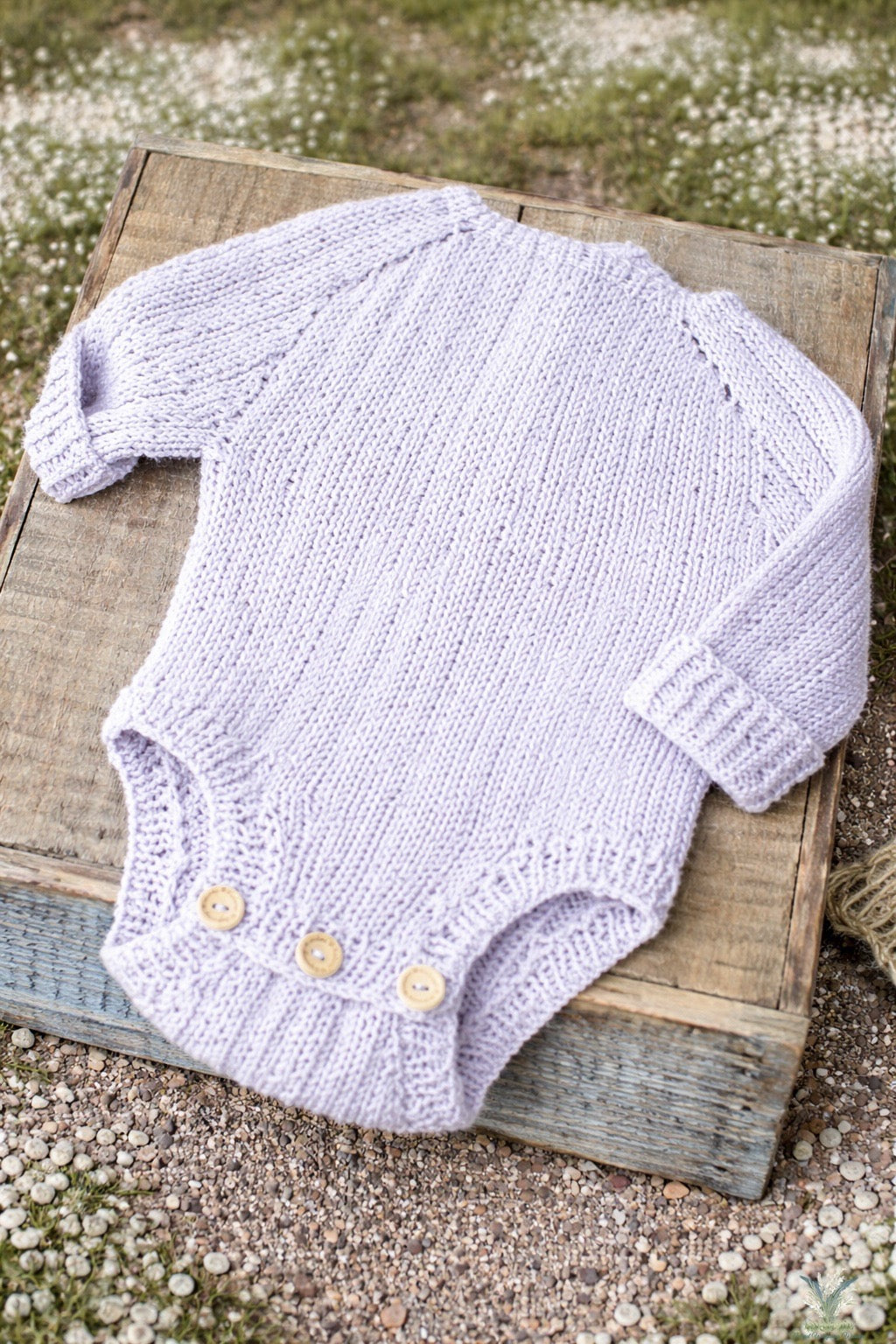 This gorgeously romper is hand knit with organic merino. I’m such a lovely shade of pale purple. This has buttons on the back and at the crotch for easy dressing and changing. The cuffed sleeve can be rolled down for growing babies. The crotch has an extra row of buttons also for growing babies. The knit ribbing style offers a lot of stretch and comfort. This is not a fitted newborn look. It is meant for more practical and lifestyle look and wear.