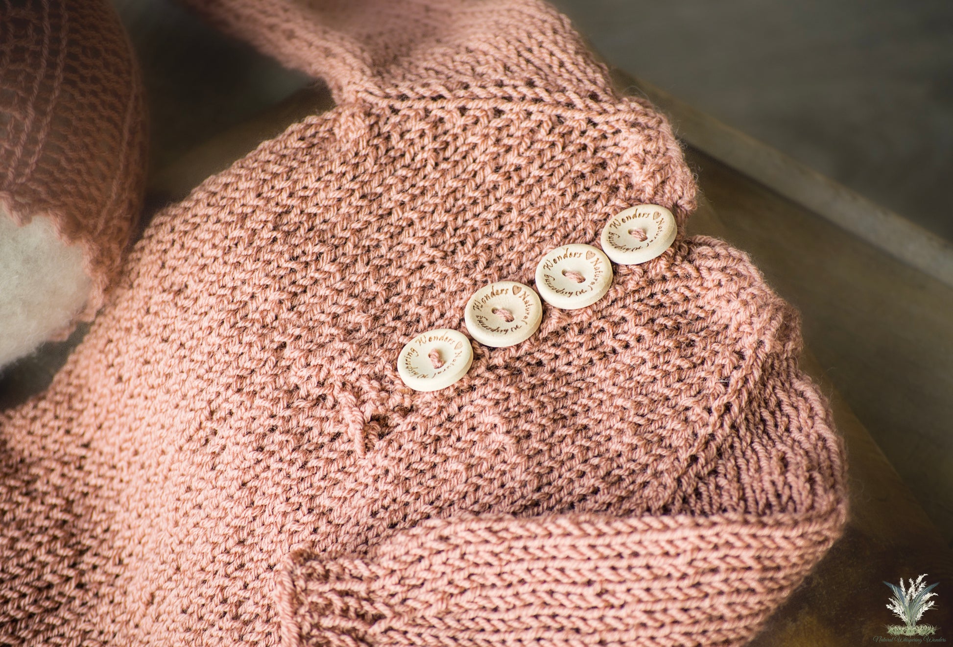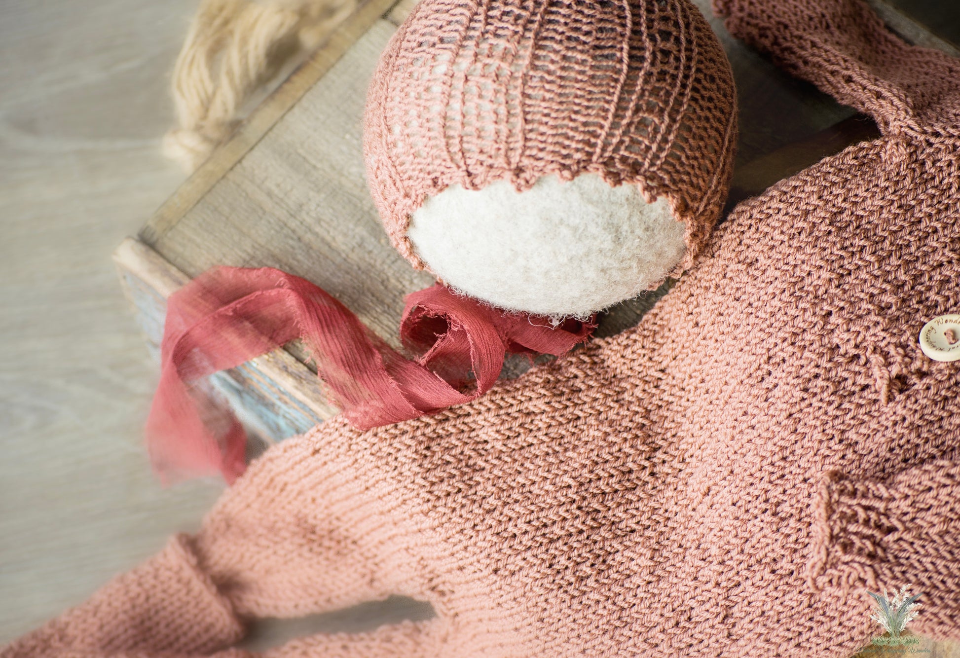Hand knit with organic merino. This is soft and slightly textured yarn. Such a beautiful neutral shade. Like all of our Signature Sets. It comes with fold over footed pockets. You can choose to show off those or not.