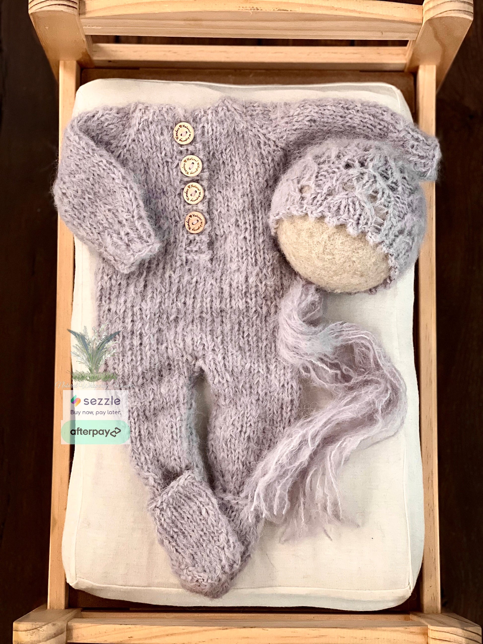 This is hand knit with hand dyed brushed alpaca. Super soft and fluffy. Like all my Signature sets. It comes with fold over footed pockets. You can choose to show off those feet or not.